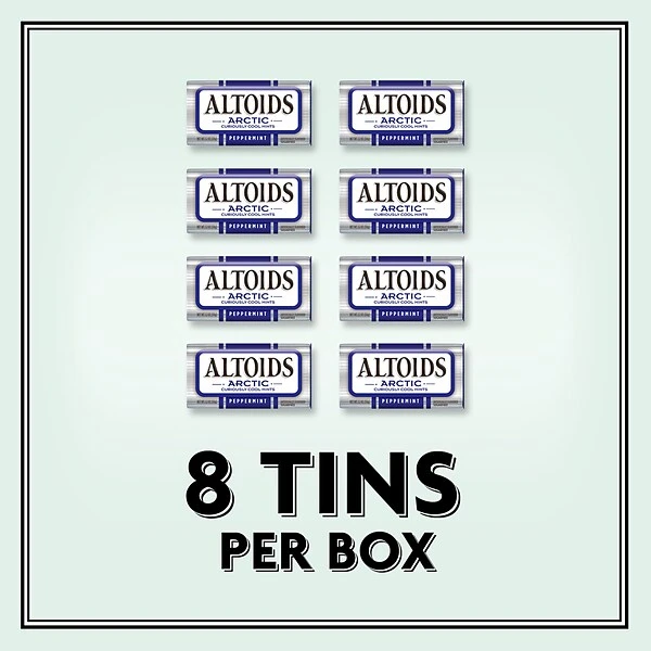 - Contains eight (8) 1.2-ounce tins of Altoids Arctic Peppermint Breath Mints