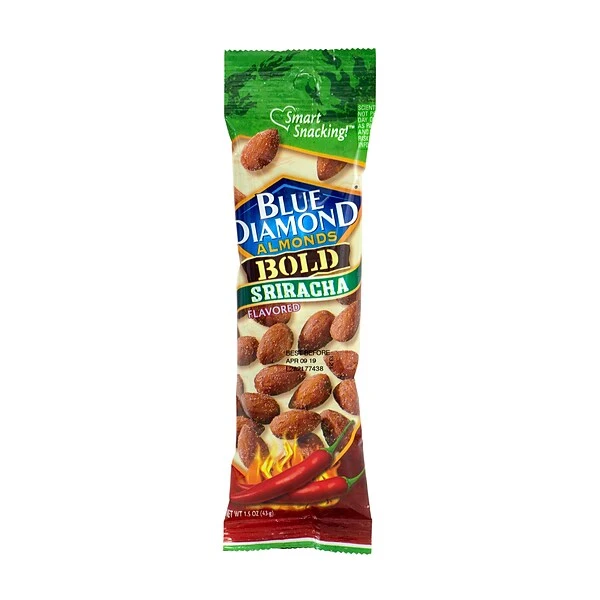 Grab yourself one of these snack size Blue Diamond BoldSriracha Almond pouches and crunch your way to a flavorful snack. These 1.5-Ounce pouches are perfect for snacking on the go, and these kosher almonds have 8 Grams of protein per pouch. Made with spicy sriracha hot sauce flavor, these Blue Diamond almonds are a must have for anyone who loves crunchy snacks.