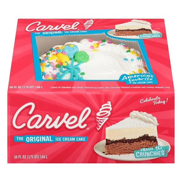 When you see balloons you know there’s a celebration going on, and this Carvel ice cream cake is no different. Made with layers of vanilla and chocolate ice cream, chocolate crunchies, and fresh whipped frosting decorated with balloons, this ice cream cake will fill any party with joy. Whether you are celebrating a birthday, wedding, baby shower, graduation or you are just in the mood for a decadent dessert, you can’t go wrong with Ice Cream Cake. Have your cake and fill it with ice cream too. From our signature Carvel Ice Cream Cake, to one of our seasonal Carvel Ice Cream Cakes, our variety is perfect for any occasion. And they all include everyone’s favorite – Carvel Ice Cream Cake crunchies. Serves up to 14 people, making it ideal for birthday parties and celebrations.