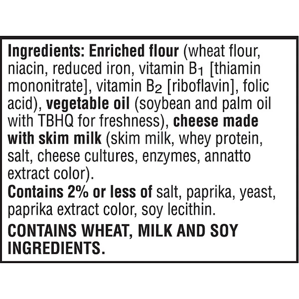 Stock your office pantry with these cheesy snacks. Crispy and delicious, these tasty baked Cheez-It crackers are made with 100-percent real cheese for a more authentic flavor. Each 1.5-ounce bag is pre-portioned for convenience, so you can share them at a meeting or event or eat on the go with minimal muss or fuss.