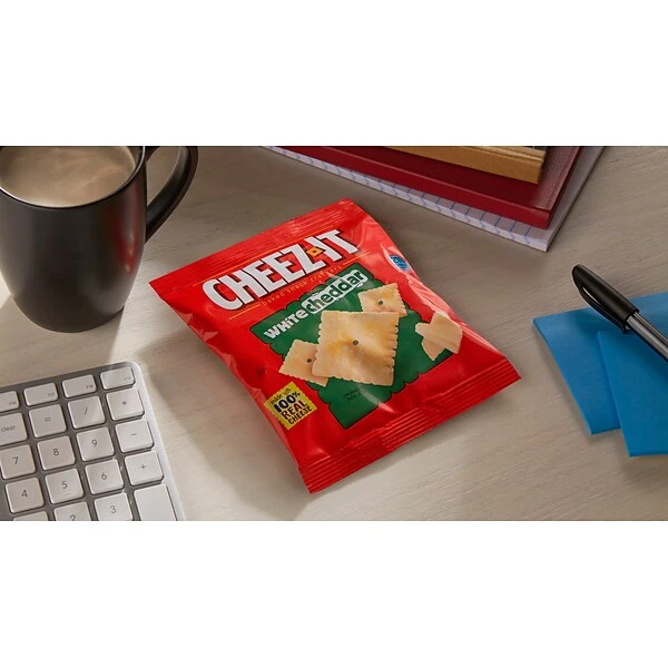 Give your staff and guests more snacking options with single-serving cracker bags. Each box contains 45 pre-portioned bags of Cheez-It crackers, plenty to feed a crowd during an afternoon meeting or to tuck into bagged lunches for a field trip or road trip. Real white cheddar cheese provides high-impact flavor that appeals to adults and children alike.