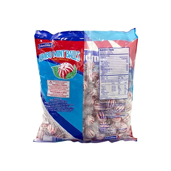 Bring a crisp, cool flavor to your office candy dish with these peppermint balls. The jumbo size offers long-lasting flavor, while the red and white striped design adds a festive touch to holiday snack tables. Individual wrappings help keep these confections fresh and prevent them from sticking together. Each bag of these Colombina peppermint balls contains approximately 120 pieces, providing an ample supply for a busy workplace.