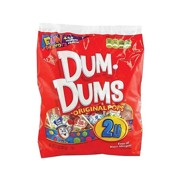 Add extra variety to your stash of office candy with these assorted-flavor lollipops. Each piece is individually wrapped and features the flavor prominently labeled, making it easy to choose your favorite. A mystery flavor brings a bit of fun to break time, and these Dum Dums Original lollipops are free from nuts, gluten, and dairy to meet a range of dietary needs.