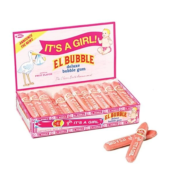 El Bubble 7 oz Small bubble gum in pink color comes in specially designed cigar box with baby girl themed image. Gluten free girl gum cigar is perfect for birth announcement, which can be enjoyed by kids and adults.