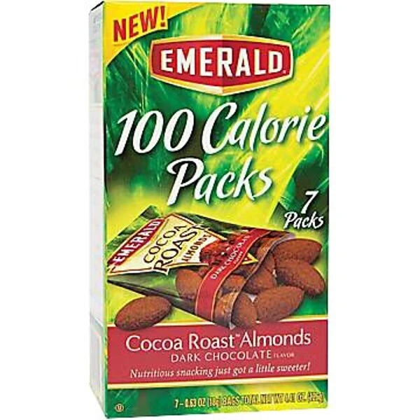 Satisfy your cravings with these almond packs. With 100 calories per pack, these delicious almonds are a great way to satiate your hunger during day-to-day activities, while the dark chocolate flavor offers a rich, sweet taste to quiet your sweet tooth. These Emerald cocoa-roast almond packs come with seven to a box, making them ideal for sharing.