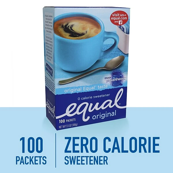 Add flavor, not calories, to your drinks by using these sugar-free sweetener packets. This box comes with 115 single-serving Equal Original sweetener packets to keep cafeterias, lobbies and break rooms stocked.