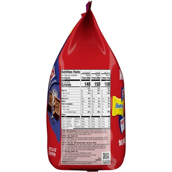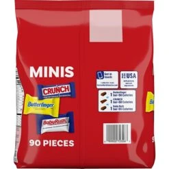 Enjoy the tasty variety of fan favorites like Butterfinger, CRUNCH and Baby Ruth in this 90-count bag of assorted Minis candy bars. Discover a variety of chocolatey candy bars that are perfectly classic and delicious. From peanut-buttery Butterfinger and the chewy, crunchy goodness of Baby Ruth to the crunchy texture of CRUNCH you know and love, these classic candy bars are individually wrapped. Great for savoring as a treat, reward or during an office break getaway, these irresistible Minis bars also make the perfect candy to share with friends, family and coworkers. Grab a bag of assorted favorites today and add a variety of chocolatey treats to your every day.