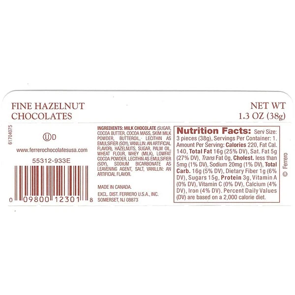 - Milk chocolate covered hazelnut with creamy filling and crispy wafer