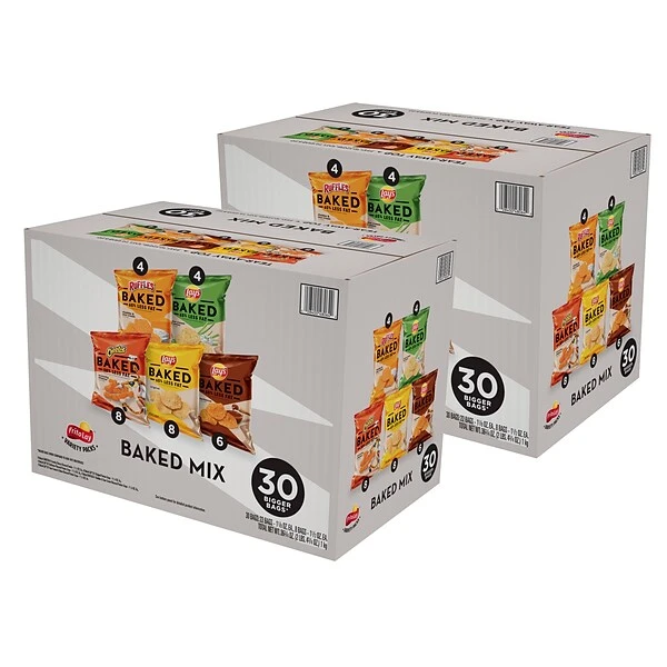 - Pack contains 16 Oven Baked Lay’s original crisps, 16 Oven Baked Cheetos crunchy cheese snacks, 12 Oven Baked Lay’s barbecue crisps, eight Oven Baked Lay’s sour cream and onion crisps, eight Oven Baked Ruffles cheddar and sour cream crisps