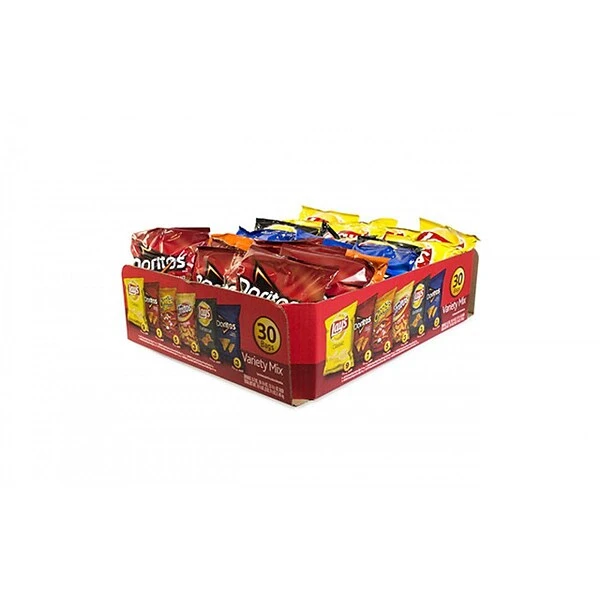 - 30 Individual Snack Size Bags: Fritos Original Corn Chips, Lay’s Classic Potato Chips, Cheetos Crunchy Cheese Flavored Snacks, 3 Doritos Cool Ranch Chips, 7 Doritos Nacho Cheese Chips, 3 Lay’s Barbecue Potato Chips