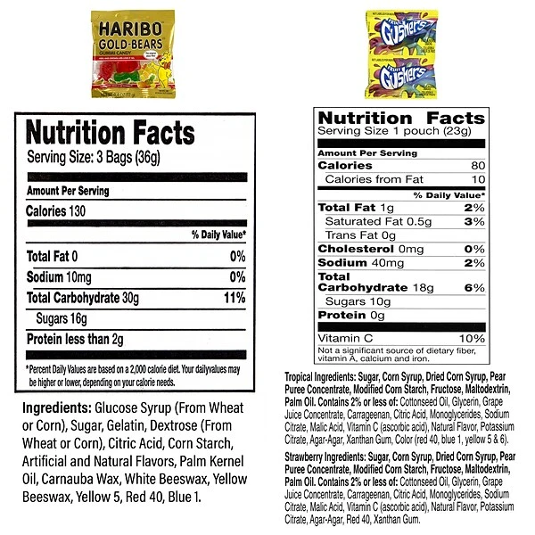 - This box includes a variety of Welch’s, Mott’s, Black Forest, Fruit by the Foot, Annie’s, Gushers, and HARIBO Gummy Bears