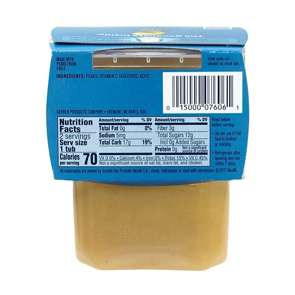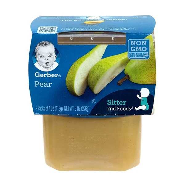 - An 8-Count case of Gerber’s 2nd Foods Baby Food 2-Pack Tubs in delicious Pear flavor