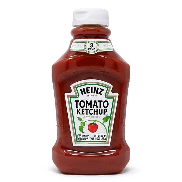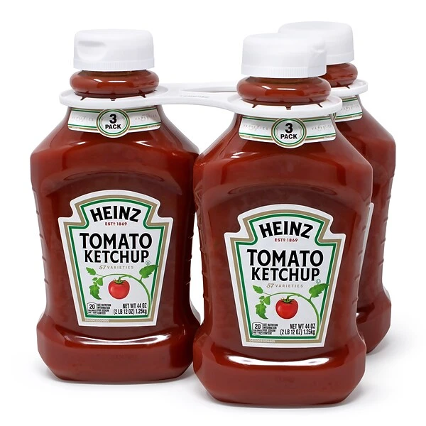- Each squeeze ketchup bottle contains 44 ounces