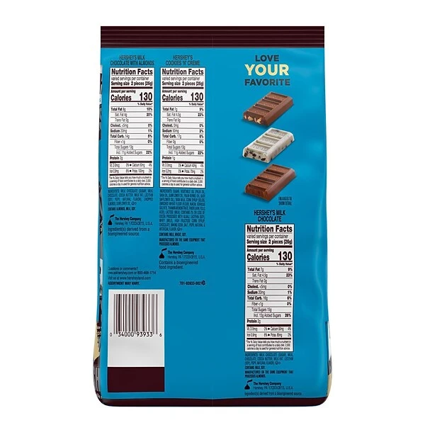 - Enjoy an assortment of snack-size milk chocolate, milk chocolate with almonds and cookies ‘n’ creme bars with classic, creamy HERSHEY’S flavors the world has known and loved for decades
