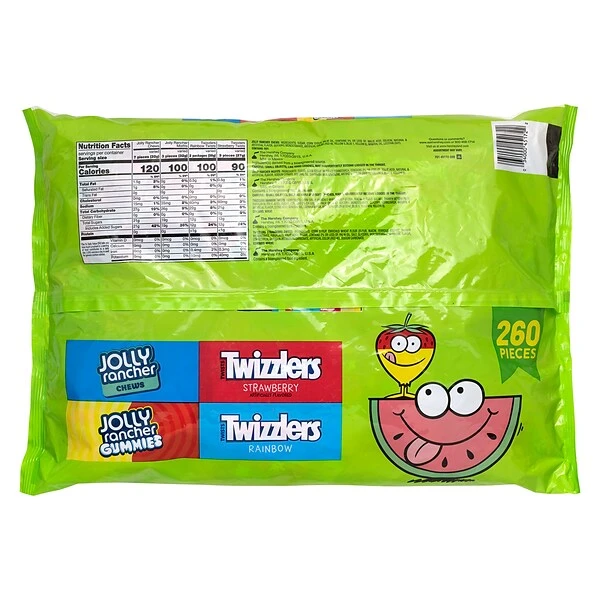 - Contains 260 bulk candy pieces of individually wrapped, fun-sized variety mix of Jolly Rancher and Twizzlers candies.