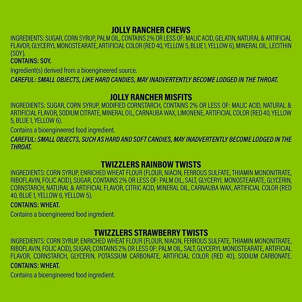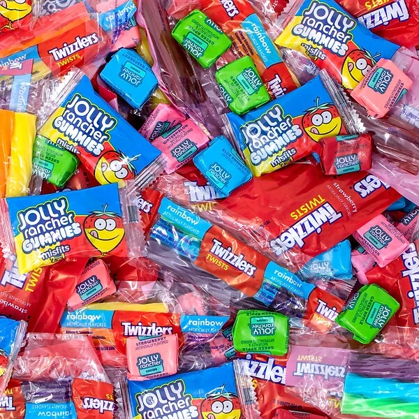 - Contains Jolly Rancher chews candy, Jolly Rancher misfits gummies, Twizzlers rainbow twists chewy candy and Twizzlers twists strawberry-flavored chewy candy.