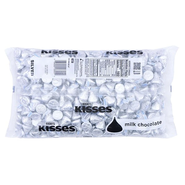 - Contains one (1) 66.7-ounce bulk bag of approximately 400 HERSHEY’S KISSES Milk Chocolate Candies in silver foils with classic KISSES plumes