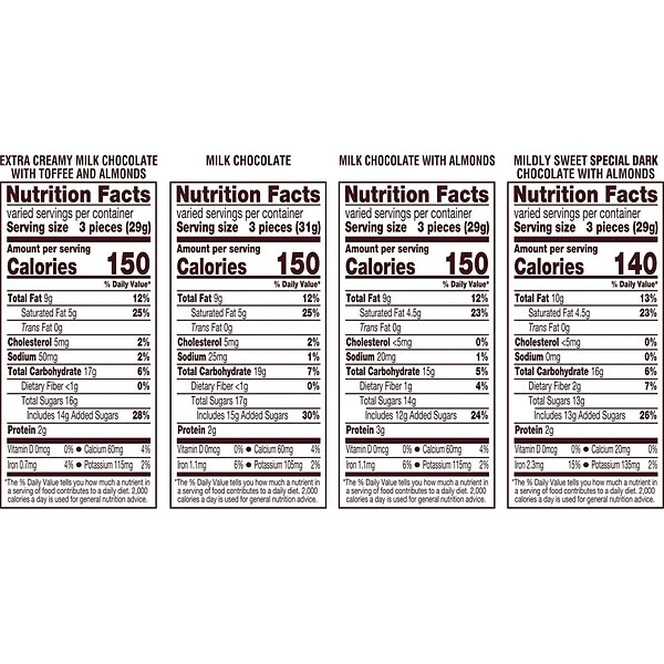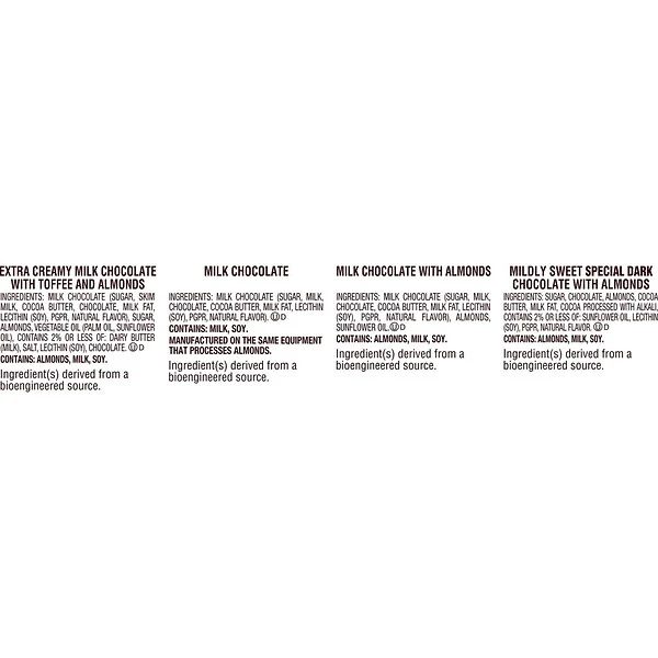 This HERSHEY’S NUGGETS candy assortment is filled with delicious assorted chocolate treats any chocolate lover will adore, and it includes scrumptious candies that are the perfect size for snacking. Dress your kitchen table up with a bowl of HERSHEY’S NUGGETS goodies, surprise your co-workers with a filled candy dish or drop a handful of these treats into a party bag for an instant, anytime gift. This chocolate variety pack includes HERSHEY’S SPECIAL DARK mildly sweet chocolate with almonds, milk chocolate, milk chocolate with almonds and extra creamy milk chocolate with almonds and toffee. Assorted chocolate candy is a crowd-pleasing treat to share during game nights and movie marathons. These chocolate candies are perfect for any holiday, too. No matter where you find yourself this year and who ends up there with you, keep some bulk assorted chocolates around to liven up parties, events, meetings, family gatherings and snack times. Each two-bite, individually wrapped candy in this party-sized mixed chocolate candy bag offers creamy, delightful HERSHEY’S NUGGETS chocolate wrapped in stunning silver or gold foils.