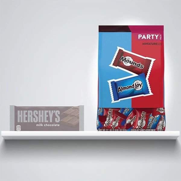 - Contains one (1) 32.1-ounce party pack of MOUNDS and ALMOND JOY Miniatures Chocolate and Coconut Assortment Candy