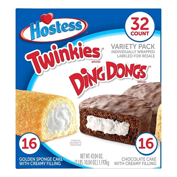- A 32 count box of Hostess Twinkies and Ding Dongs