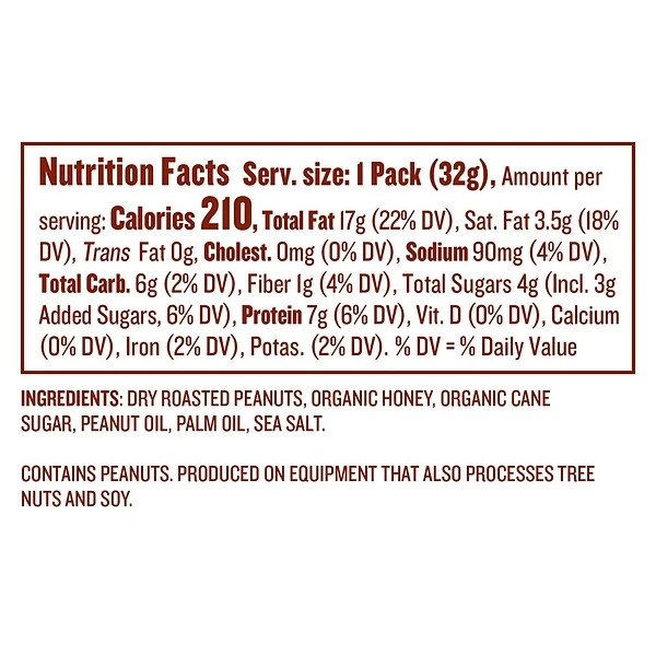 - 60 individual squeeze packs of Justin’s naturally delicious Honey Peanut Butter