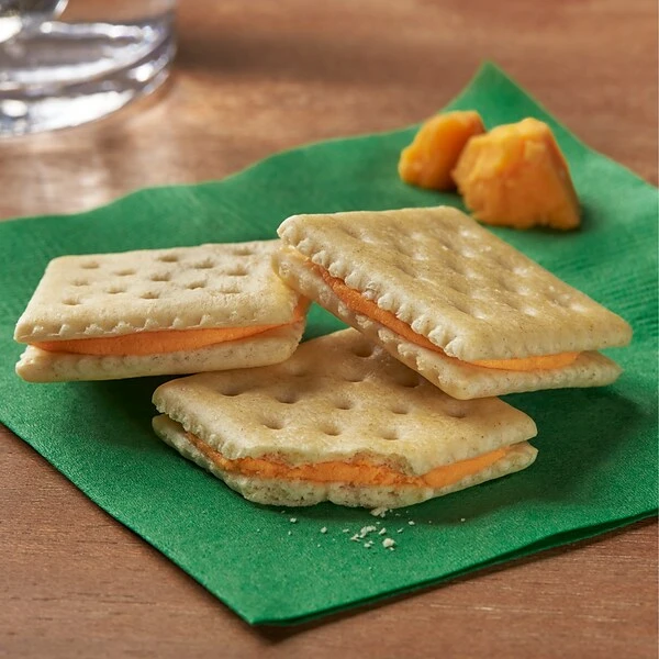 Pair beverages with this 1.8-ounce pack of sandwich crackers for a light, quick snack. It’s a kosher-approved and nut-free snack that offers a crispy, real cheddar cheese flavor. Stock up on this 12-pack box of Keebler Club & Cheddar crackers for on-the-go snacks or break time munchies.