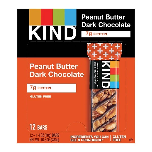 Fill the office candy jar with these snack bars. The rich blend of peanuts and chocolate creates a luscious treat during lunch breaks and meetings, and the 7 grams of protein in these KIND 1.4-ounce snack bars help reduce food cravings in between meals.