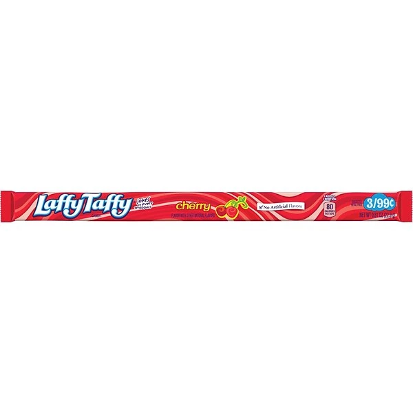 Wonka® Laffy Taffy® Rope comes in cherry flavor and is delicious as well as stretchy. 11″ Rope is individually wrapped and has jokes on wrapper, sold as 24 per box.