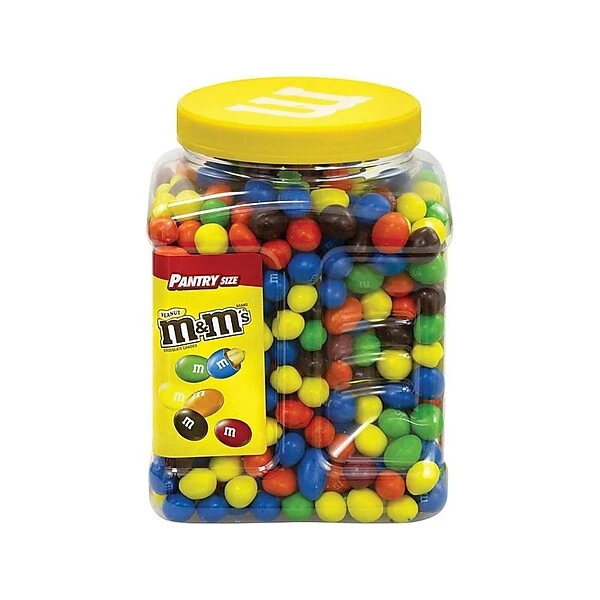 - Bulk resealable jar filled with M&M’S Peanut Chocolate Candy