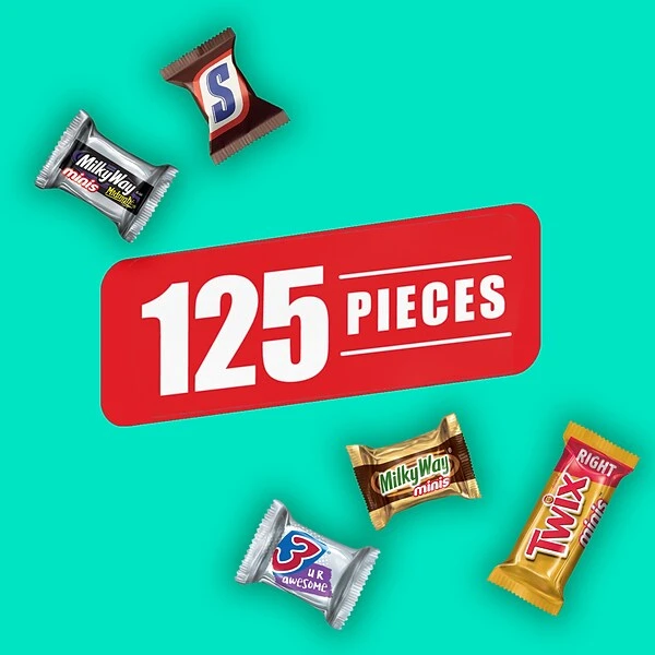 - Contains one (1) 35.24 ounce, 125-piece variety bag of Minis Size chocolate candy bars