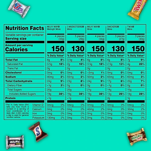 So much great candy to share with friends and family! SNICKERS, TWIX, MILKY WAY & 3 MUSKETEERS milk chocolate minis size candy bars make this bag a universally tasty candy assortment! These bite-sized treats are perfect for all occasions. Pack them in lunches or take some on the road for your next outdoor adventure. Chocolate candy makes the perfect on-the-go treat and dessert. Don’t stop at just unwrapping and enjoying these candies, add them to your favorite dessert and baking recipes. Simply mix in M&M’S candy and candy bar pieces in place of chocolate chips or as an extra delicious addition to any recipe. Fun Size candy also makes great ice cream toppings. Craft the perfect sundae with SNICKERS, TWIX, MILKY WAY Original, MILKY WAY Midnight, and 3 MUSKETEERS chocolate candy pieces. This bulk bag is also great for birthday parties, pinata candy and adding as a party favor. Add this chocolate candy variety bag to your shopping list today!