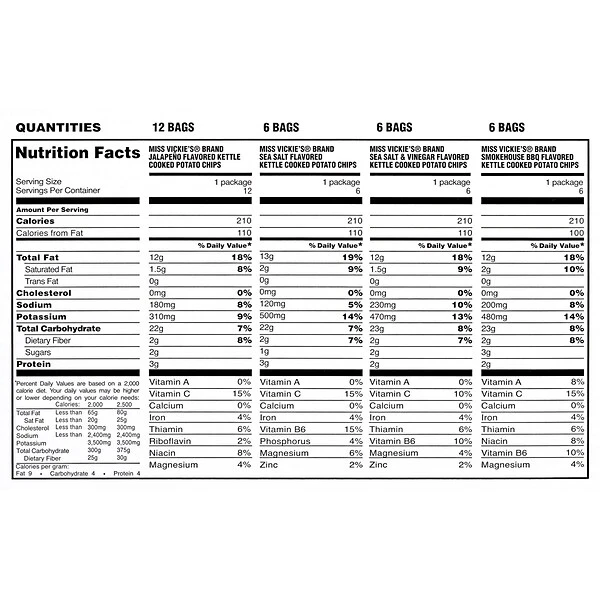 - 12 Jalapeno, 6 Sea Salt and Vinegar, 6 Smokehouse BBQ, 6 Original Recipe