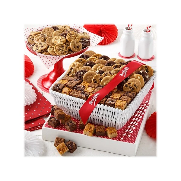 - Basket contains 36 brownie bites (double fudge, toffee fudge, and blondie flavors) and 72 Nibblers bite-size cookies (semisweet chocolate chip, oatmeal raisin walnut, cinnamon sugar, triple chocolate, and white chocolate macadamia nut flavors)