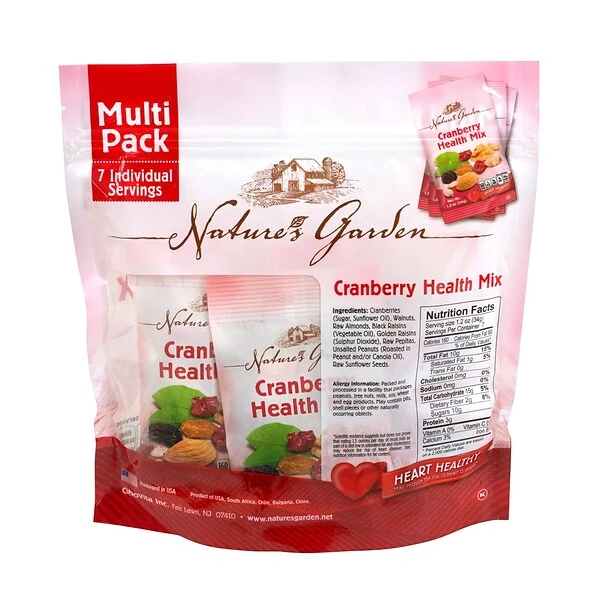 - 6 7-Bag Pouches of Nature’s Garden Cranberry Health Mix with a blend of dried fruits and crunchy nuts