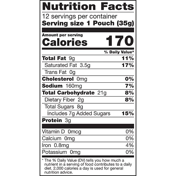 Simple, recognizable ingredients. #1 Ingredient: Whole Grain Oats, #2 Ingredient: Nuts (Peanuts). No colors from artificial sources. No artificial flavors. No artificial sweeteners. Only 8-9g of sugar per serving.
