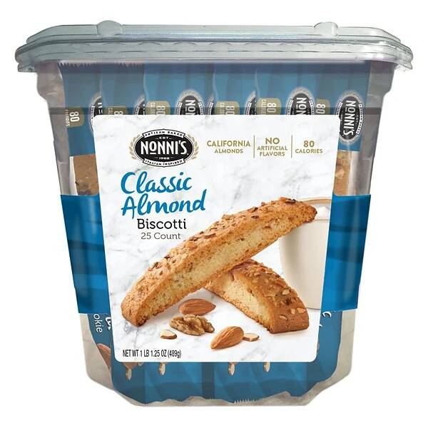 Made with wheat flour, butter, and California almonds90 calories per biscottiKosher