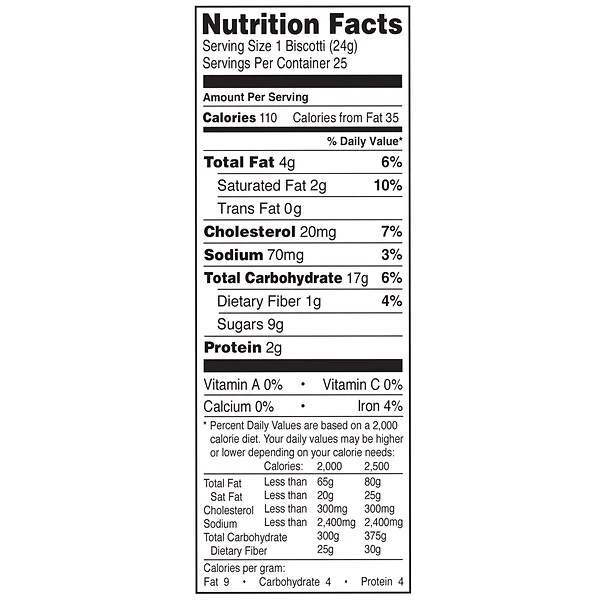 - Each biscotti has UPC and nutrition facts and is individually wrapped for freshness and convenience. Ideal for catering, vending machines, and on-the-go snacking