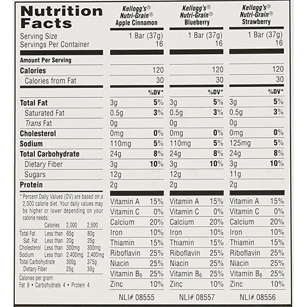Choose from a variety of flavors with this pack of cereal bars. It includes 16 each of strawberry, blueberry and apple cinnamon, making it ideal for stocking hotel lobbies, office break rooms or school lunch rooms. These Nutri-Grain bars are 1.3 ounces each to provide a light, healthy meal or snack.