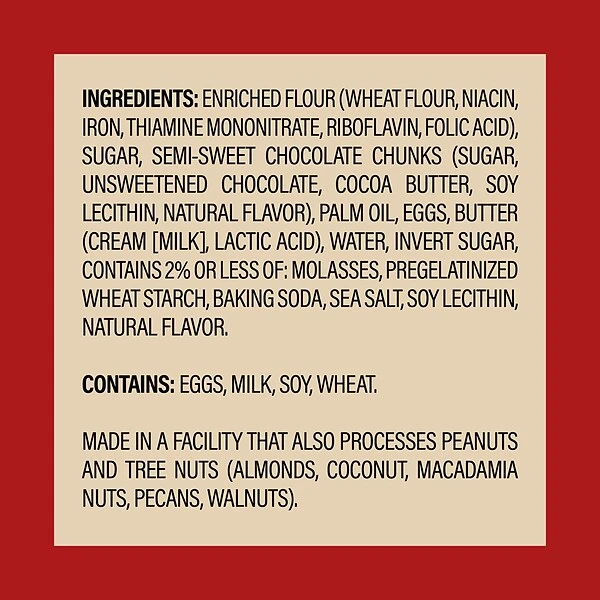 - All natural chocolate chunk cookie dough that is pre-formed and ready to bake.