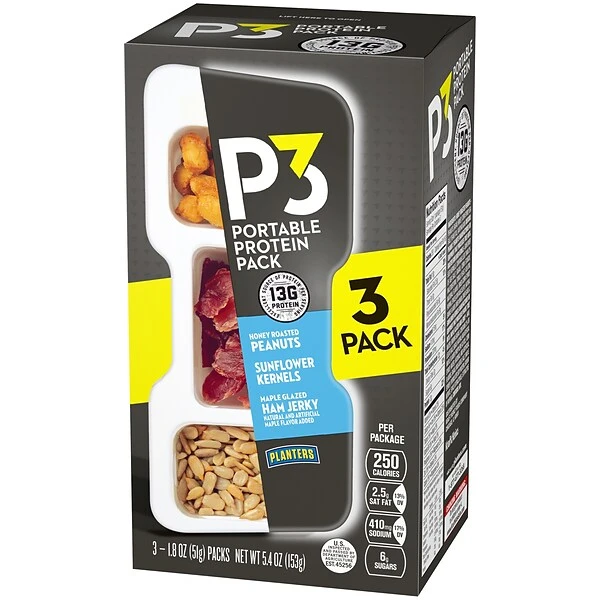 Protein snacks help keep you active and going strong, but some protein snacks are over-processed with added protein and just don’t taste good. Planters P3 combines fresh roasted nuts, premium-cut lean jerky, and tasty seeds for a delicious snack that delivers an excellent source of protein.