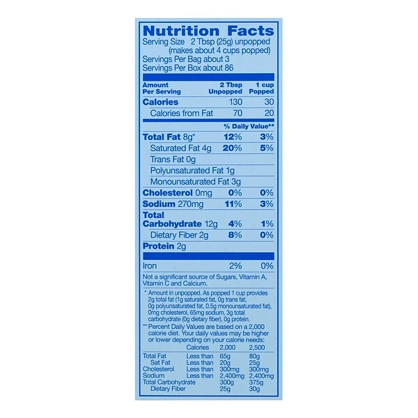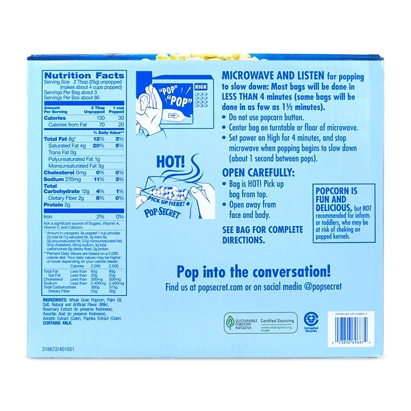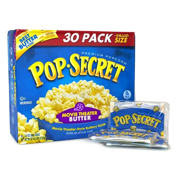 - Convenient microwaveable bags of popcorn that pop fresh every time