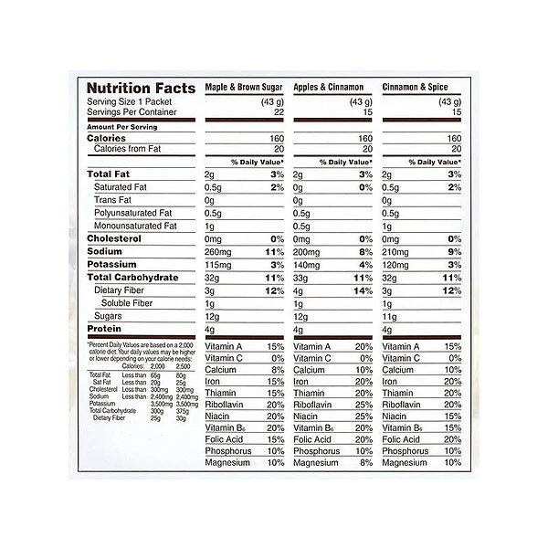- Variety pack contains 22 maple and brown sugar oatmeal, 15 apples and cinnamon oatmeal, 15 cinnamon and spice oatmeal