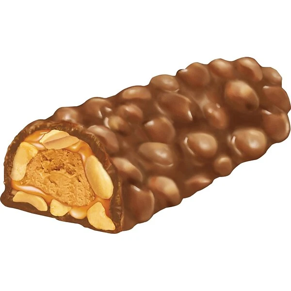 - Peanut butter and chocolate candy bars with roasted peanuts and caramel