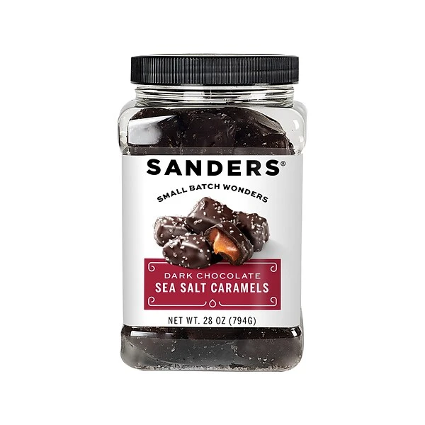 The famous Sanders Small Batch Wonders kettle-cooked caramel, draped in premium dark chocolate and sprinkled with coarse sea salt. Available in this value-size 28 oz. tub, perfect for gifting or stocking the pantry. Get yours today!