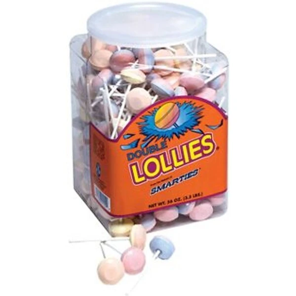 Double Lollies Lollipop comes in assorted fruit flavor for added taste. Gluten and peanut free lollipop is individually wrapped, sold as 200 per tub.