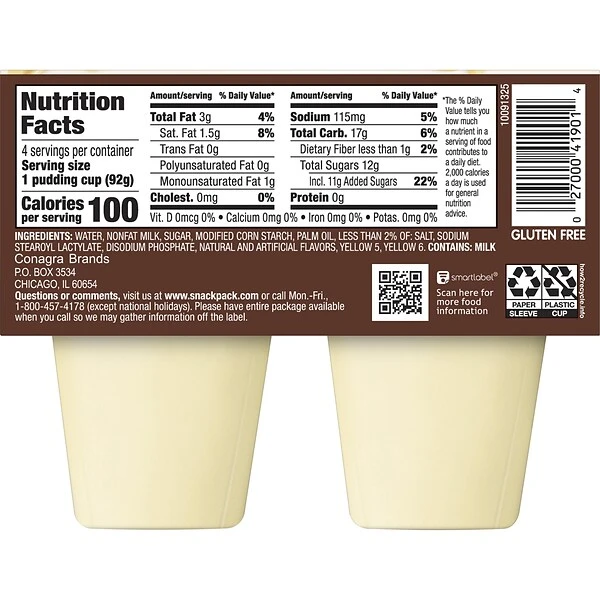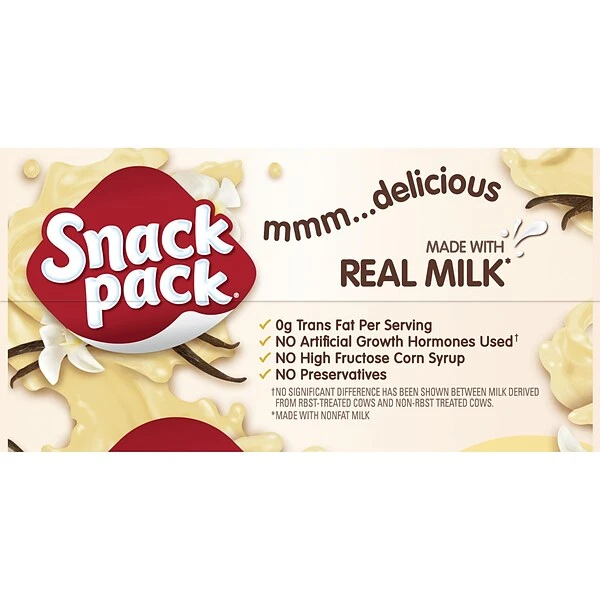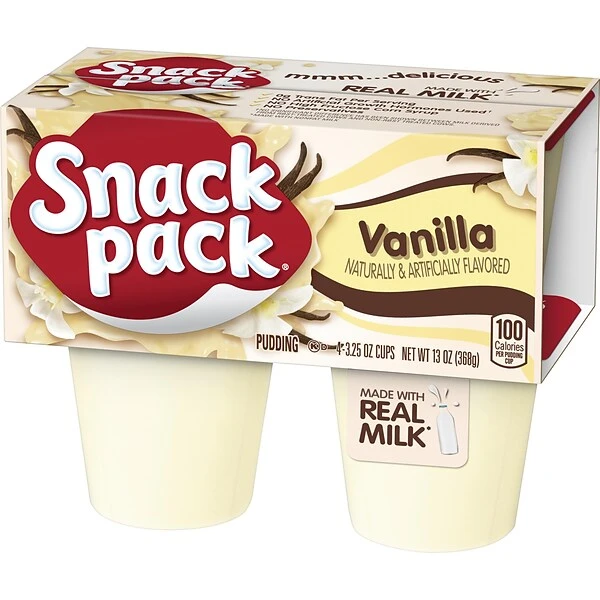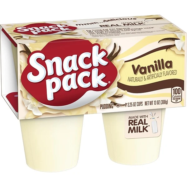 Share the desserts you loved while growing up with your own kids today with Snack Pack Vanilla Pudding Cups. Snack Pack’s Vanilla pudding dessert is the sweet and creamy classic everyone loves. Vanilla Snack Pack Pudding Cups are gluten-free and Kosher, and are made with real milk for a smooth, creamy treat. Perfect for a sack lunch or on-the-go, these pudding cups are a creamy, delicious snack the whole family is sure to love. Snack Pack Vanilla Pudding has 100 calories with no preservatives and zero grams trans fat per 3.25 oz serving.