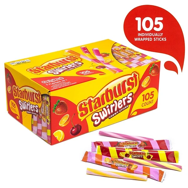 - Contains one hundred and five (105) individually wrapped STARBURST Swirlers Chewy Candy Sticks