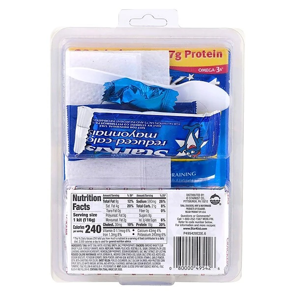 - Each pack includes: 2.6 oz. of Albacore tuna in the StarKist Flavor Fresh Pouch, light mayonnaise and relish packets, mixing spoon, crackers, and a mint