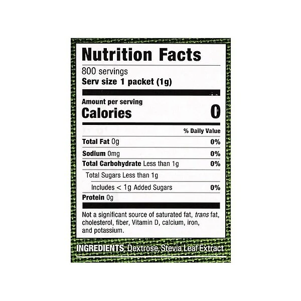 - Ingredients: dextrose and stevia leaf extract