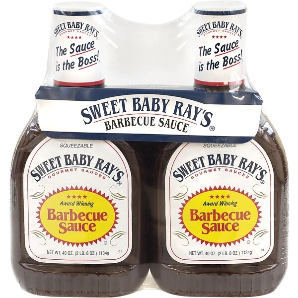 Spice up your meal with Sweet Baby Ray’s Barbecue Sauce, 40 oz, 2 Pack. This 2 pack of 40 ounce squeeze bottles is great for adding some flavor to steaks on the grill, the next office barbecue, or keeping in the break room fridge to bring some sweet BBQ flavor to any sandwich. Sweet Baby Ray’s Barbecue Sauce, 40 oz, 2 Pack has all the classic barbecue sauce taste with a hint of sweet, tangy flavor. A must have for any picnic or work party, and great as a dipping sauce to turn that boring lunch into something delicious!